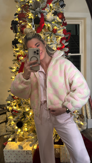Wrap yourself in pure comfort with this Bubblegum Cozy Sherpa Jacket—where soft meets style. Featuring a plush sherpa fabric that feels like a cloud against your skin, this oversized jacket boasts a charming pink and white checkered print that screams vintage cool. The full zip-front design makes layering a breeze over your favorite tanks, tees, or dresses, while the high collar delivers extra warmth and that effortlessly chic vibe. Perfect for the girl who refuses to choose between cozy and cute, this affordable layering essential brings playful personality to every outfit.