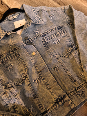 Spread holiday cheer in our Christmas Charm Denim jacket! This light wash style features an adorable bow detail that adds instant personality to any outfit. Perfect for festive gatherings or casual everyday wear, it's the cozy layer that brings both warmth and whimsy to your wardrobe. Dress it up or down—this jacket is your new seasonal favorite.