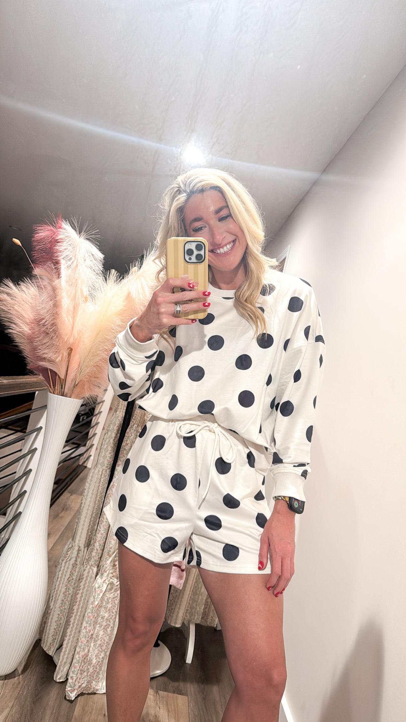 The It Girl Polka Dot Short Set is your new go-to for effortless style. Crafted from soft, breathable cotton, this trendy two-piece features a playful polka dot pattern that's perfect for casual days or laid-back hangouts. The plush fabric feels amazing against your skin while the relaxed fit keeps you comfortable all day long. True to size with a cozy, slouchy silhouette that's totally on-trend right now. Size accordingly for that perfect fit that lets you move freely without any fuss.