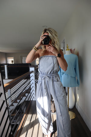 Effortless comfort meets contemporary style in this mineral-washed barrel leg jumpsuit. Crafted from soft cotton French terry knit, it features a sleeveless tube top with elastic and an adjustable drawstring waist for a customizable fit. Functional pockets and striking contrast seam details elevate the relaxed silhouette, while the tapered barrel legs create a modern, polished look. Perfect for casual days or dressed-up occasions.