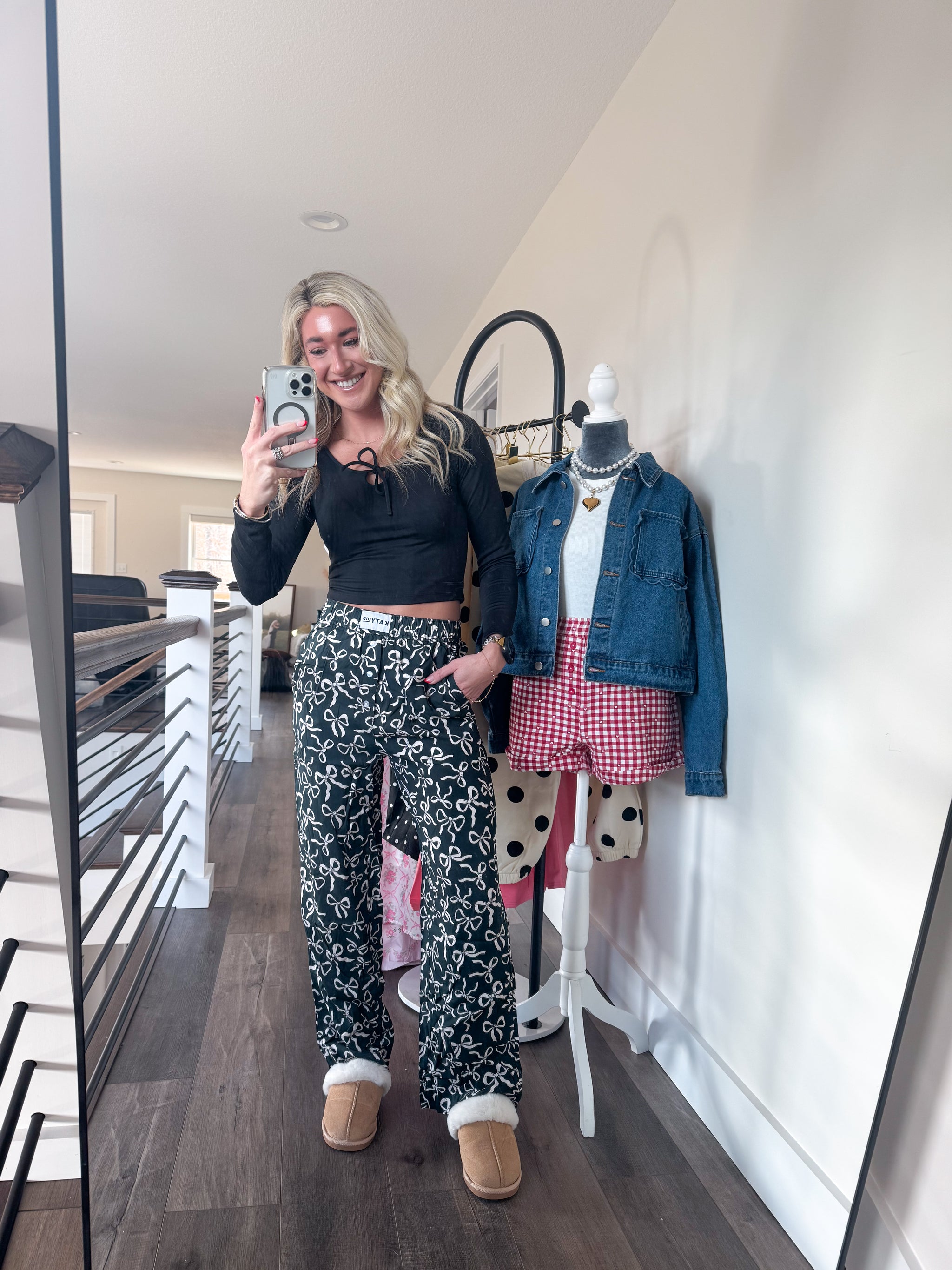 Playful comfort meets timeless style with these Life in LUXE Boxer Pants. Featuring an all-over black and white bow print, these pull-on pants deliver effortless ease with a stretch waistband and faux button details. Crafted from silky-smooth 100% rayon, they're breathable and luxuriously soft against your skin. The signature logo stitching at the waistband adds that perfect touch of polish. Your new go-to for cozy days done right.